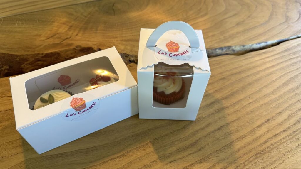 Die Cupcakes selbst wirken fast zu schön zum Essen: Rote Johannisbeeren auf hellem Teig, orangefarbene Streusel auf Red Velvet, Pistazien auf dunkler Schokolade. Ich hatte die Gelegenheit, alle drei Sorten zu probieren und war begeistert von ihrem Geschmack. Dahinter stecken die Sorten „Johannisbeere“, „Red Velvet“ und „Dubai-Schokolade“.