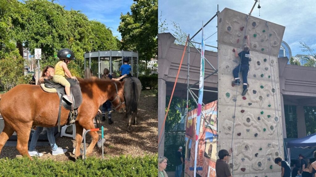 Zu den Höhepunkten gehörte neben der Gesichtsbemalung vor allem die Kletterwand. Dort konnten sowohl große als auch kleine Besucher ihren Mut in luftiger Höhe unter Beweis stellen – vom schnellen Hinaufklettern bis hin zum entspannten Zurücklehnen beim Abseilen. Auch das Ponyreiten der Reitschule Felsalbtal lockte viele kleine Pferdefans an. Doch die Ponys waren nicht die einzigen tierischen Freunde auf dem Exerzierplatz: Auch der Hundeverein Gersbach begeisterte mit seinen vierbeinigen Fellnasen. Die Kinder durften unter Aufsicht der Vereinsmitglieder einen kleinen Parcours mit den Hunden absolvieren, natürlich mit anschließender Belohnung und vielen Streicheleinheiten.
