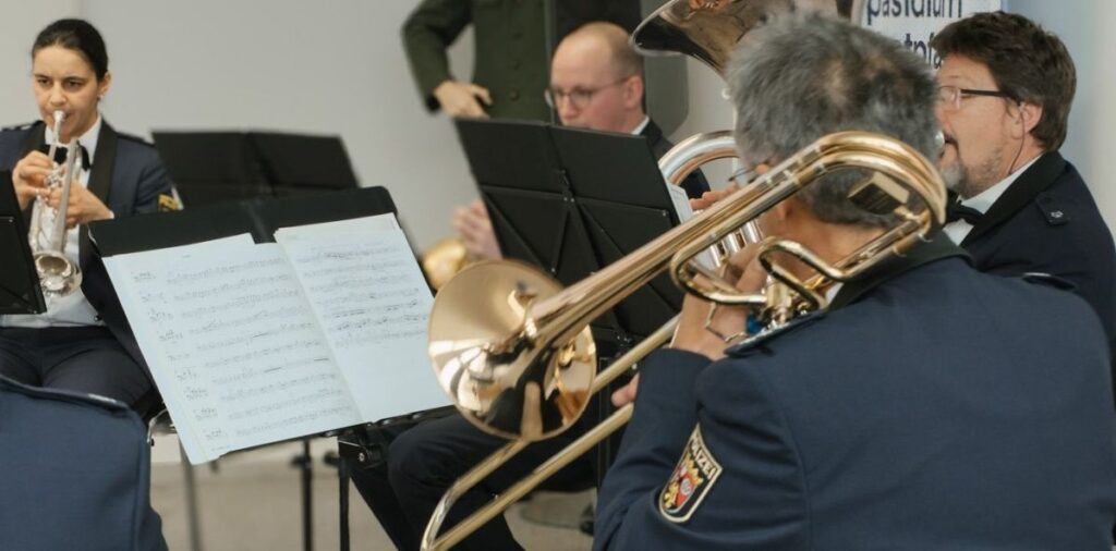 „What a Wonderful World“ lauteten, neben einem Abba-Medley, dem James-Bond-Titelsong „Skyfall“ und „I Did It My Way“, die von Reiser und Schröder gewünschten Musikstücke, die vom Blechbläserquintett des Landespolizeiorchesters Rheinland-Pfalz unter der Leitung von Markus Privat vorgetragen wurden. Zusammengefasst sagt diese Auswahl viel über die beiden Hauptakteure der gelungenen Veranstaltung aus.