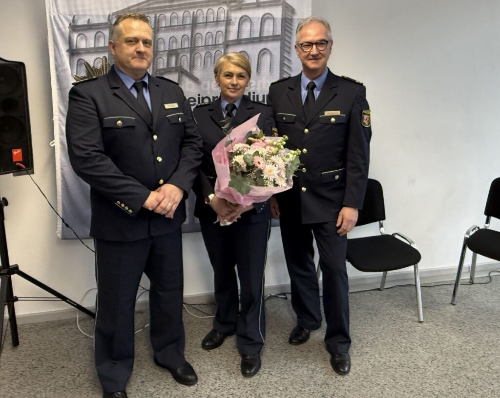 Der Blick zurück galt Jacqueline Schröder, die im Oktober dem Ruf des Innenministeriums gefolgt und zur Polizeidirektion Ludwigshafen gewechselt war. In seiner Rede zeichnete Gastauer den Weg Schröders nach, die vor rund 25 Jahren ihren Dienst begonnen habe und die Polizei, wie er sagte, „mit Leib und Seele lebt“. Er berichtete von ihrer Fachkompetenz, Führungsstärke und ihrem strategischen Denken, von Stationen bei der Bereitschaftspolizei, im Innenministerium, im Führungsstab des Präsidiums und schließlich von ihrer Zeit als Leiterin der Polizeiinspektion Pirmasens. „Du hast dich mit dieser Aufgabe identifiziert“, wandte sich Gastauer direkt an Schröder. Dass sie sich parallel an der Weiterentwicklung des polizeilichen Leitbildes beteiligte und Projekte zur Verkehrs- und urbanen Sicherheit vorantrieb, sei Ausdruck dieser Haltung. Auch die menschliche Seite blieb nicht unerwähnt. Schröder sei ein politischer Mensch und jemand, der Ausgleich beim Wandern oder Mountainbiken finde. „Und nach meinen Ermittlungen gehört auch ein gutes Glas Grauburgunder dazu.“