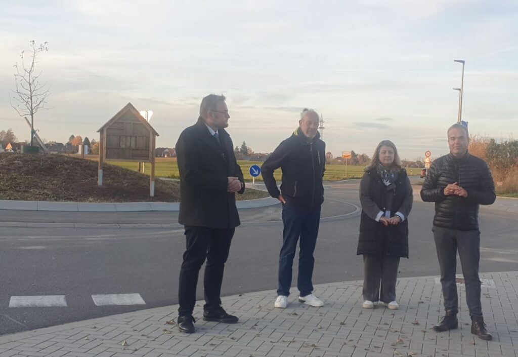 Oberbürgermeister Markus Zwick würdigt bei der kleinen Feierstunde das Engagement von Gewinnerin, Ortsbeirat und Förderern und bedankt sich ausdrücklich bei den Spendern: „Sie alle haben mit Ihren Spenden dazu beigetragen, dass wir heute diesen schönen Kreisel hier eröffnen können“, sagt Zwick beim Termin.