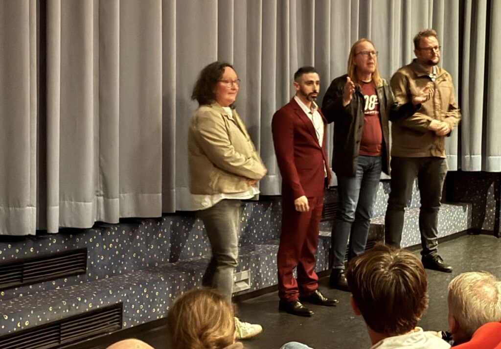 Nach der Premiere zeigten sich die Hauptdarsteller, inklusive des immer solche Projekte unterstützenden Kinoinhabers Andreas Groß, dem lange applaudierenden Publikum vor der Riesenleinwand.