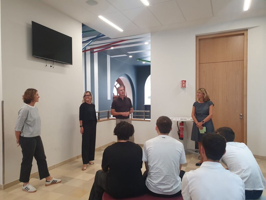 Mit kräftigem Applaus wurde das Werk offiziell an die Schulgemeinschaft übergeben. Für die Schülerinnen und Schüler ist es ein neuer Blickfang im Alltag – und für Passanten durch ein großes Fenster zur Alleestraße ebenfalls sichtbar.