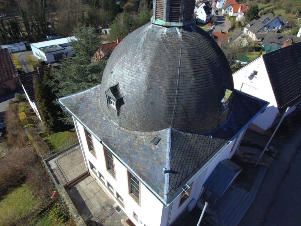 von Julia Schepp • Titelfoto: Julia ScheppDie denkmalgeschützte evangelische Kirche in Rodalben, ein zentraler Ort für die rund 1.600 Mitglieder der Gemeinde, erhält eine dringend benötigte Dachsanierung. Möglich wird das Vorhaben durch eine Förderzusage der Daniel-Theysohn-Stiftung in Höhe von 180.000 Euro. Feuchtigkeitsschäden im Gebälk und an der Schieferdeckung haben das Kirchendach so stark beeinträchtigt, dass eine komplette Erneuerung der altdeutschen Schieferdeckung sowie der darunterliegenden Dämmung und Holzschalung erforderlich ist.