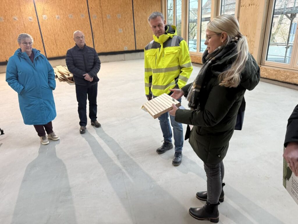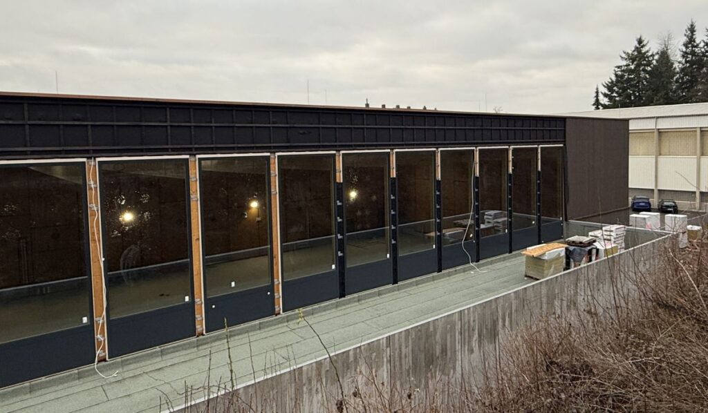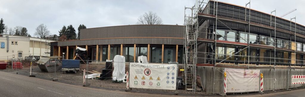 Wie schnell dieser Neubeginn Form angenommen hat, überraschte selbst erfahrene Projektbeteiligte. „Wenn man im Frühjahr 2025 an der Baustelle vorbeigelaufen ist, war das schon beeindruckend“, sagt Natascha Jäntsch, Projektleiterin und Architektin im Hochbauamt. Jäntsch zeichnet für die Umsetzung des Siegerentwurfs des Stuttgarter Architekten Dipl.-Ing. Walter Huber verantwortlich. „Innerhalb weniger Wochen standen die Stützen, dann die aussteifenden Außenwände, das Grundkonstrukt – und plötzlich war auch das Dach drauf.“ Möglich wurde dieses Tempo durch eine moderne Holzbauweise. Im Vergleich zur klassischen Rohbauweise sei man „deutlich schneller in der Gebäudehülle gewesen“.