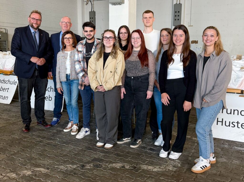 Am 7. August informierte sich Oberbürgermeister Markus Zwick persönlich über die laufenden Vorbereitungen in der Messehalle 5D. Dabei ließ er sich von den Auszubildenden den Ablauf zeigen – vom Erfassen der Bücher im elektronischen Zentralregister bis zur fertigen Zusammenstellung der Pakete. Zwick lobte den Einsatz und die Präzision des Teams, das unter hohem Zeitdruck arbeitet, um pünktlich zur Ausgabe fertig zu werden. Auch Guido Frey, Leiter des Schulverwaltungsamtes, war vor Ort und stand für Fragen bereit. Die Aufnahmen vom Termin zeigen die intensive Arbeit hinter den Kulissen und geben einen Einblick in den logistischen Aufwand, der hinter der Schulbuchausleihe steckt.