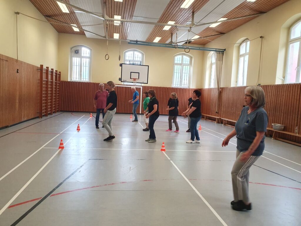 Aktuell bereitet sich die Gruppe auf ihren ersten öffentlichen Auftritt vor. Beim Spielfest am Eisweiher am 29. Juni werden sie ein Choreografie-Medley zeigen – eine Auswahl verschiedener Tänze, zusammengeführt zu einem Showblock. Noch sitzt nicht jede Figur, aber die Motivation ist spürbar. „Wir müssen jetzt einfach regelmäßig dranbleiben“, sagt Ruble-Jekel. Geprobt wird einschließlich Leitkegeln, die die Grenze der Bühne auf dem Spielfest darstellen.