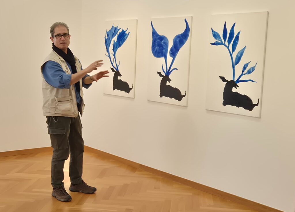 Die Ausstellung zeigt Holzschnitte des in Stuttgart lebenden israelischen Künstlers Abi Shek. Seine auf das Wesentliche reduzierten Tierdarstellungen, teils mit blauer Tusche erweitert, greifen archaische Bildwelten auf, die an Hieroglyphen oder Höhlenmalerei erinnern. Der bewusste Verzicht auf Werktitel eröffnet Raum für eigene Deutungen. Ergänzend dazu ermöglichen Expertenführungen, darunter auch Termine mit dem Künstler selbst, einen vertieften Zugang.