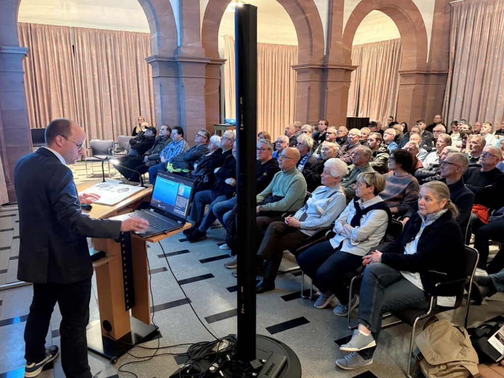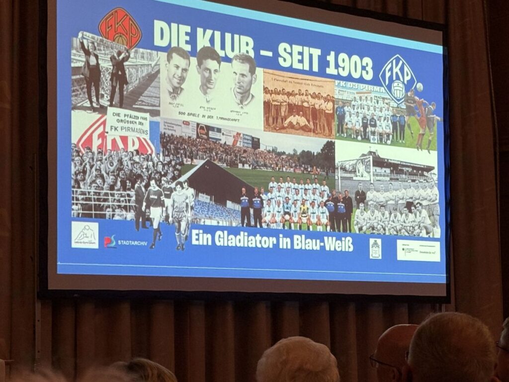 von Andreas Petry • Titelfoto: Andreas PetryDer FK Pirmasens ist Seele und DNA der Stadt. Neben der Schuhindustrie verbindet der Verein Generationen, schafft Erinnerungen und weckt Emotionen, die weit über neunzig Minuten hinausgehen. Genau diese Mischung aus Stolz, Leidenschaft und gelebter Geschichte lag spürbar in der Luft, als rund 150 Zuhörer im Carolinensaal den Worten von Stadtarchivar Norman Salzmann lauschten. Und: Es war nicht irgendein Publikum, sondern die FKP-Familie, Menschen, die Woche für Woche mit ihrer „Klub“ mitfiebern.