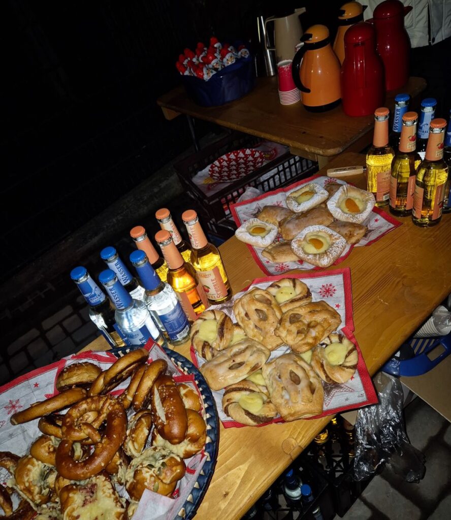 Für den musikalischen Rahmen sorgte Mitglieder des Blasorchesters, das drei weihnachtliche Stücke spielte. Außerdem waren Kaffeegebäck, Laugengebäck und Getränke vorbereitet, darunter auch Glühwein und Kinderpunsch.